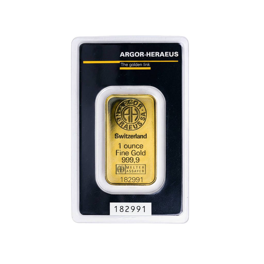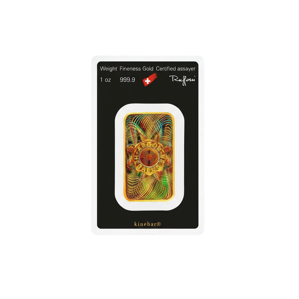 Invest in the popular and versatile 1 oz Argor Heraeus Kinebar Gold Bar. Made with .9999 pure gold and featuring the unique Kinebar technology on the reverse, this bar comes sealed in a blisterpack with a serial number and assay card. Available now at SG Bullion.
