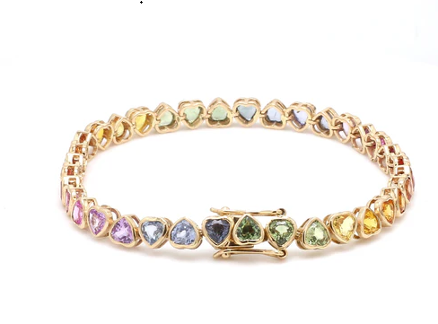 Rainbow Sapphire Heart Bezel Set Bracelet